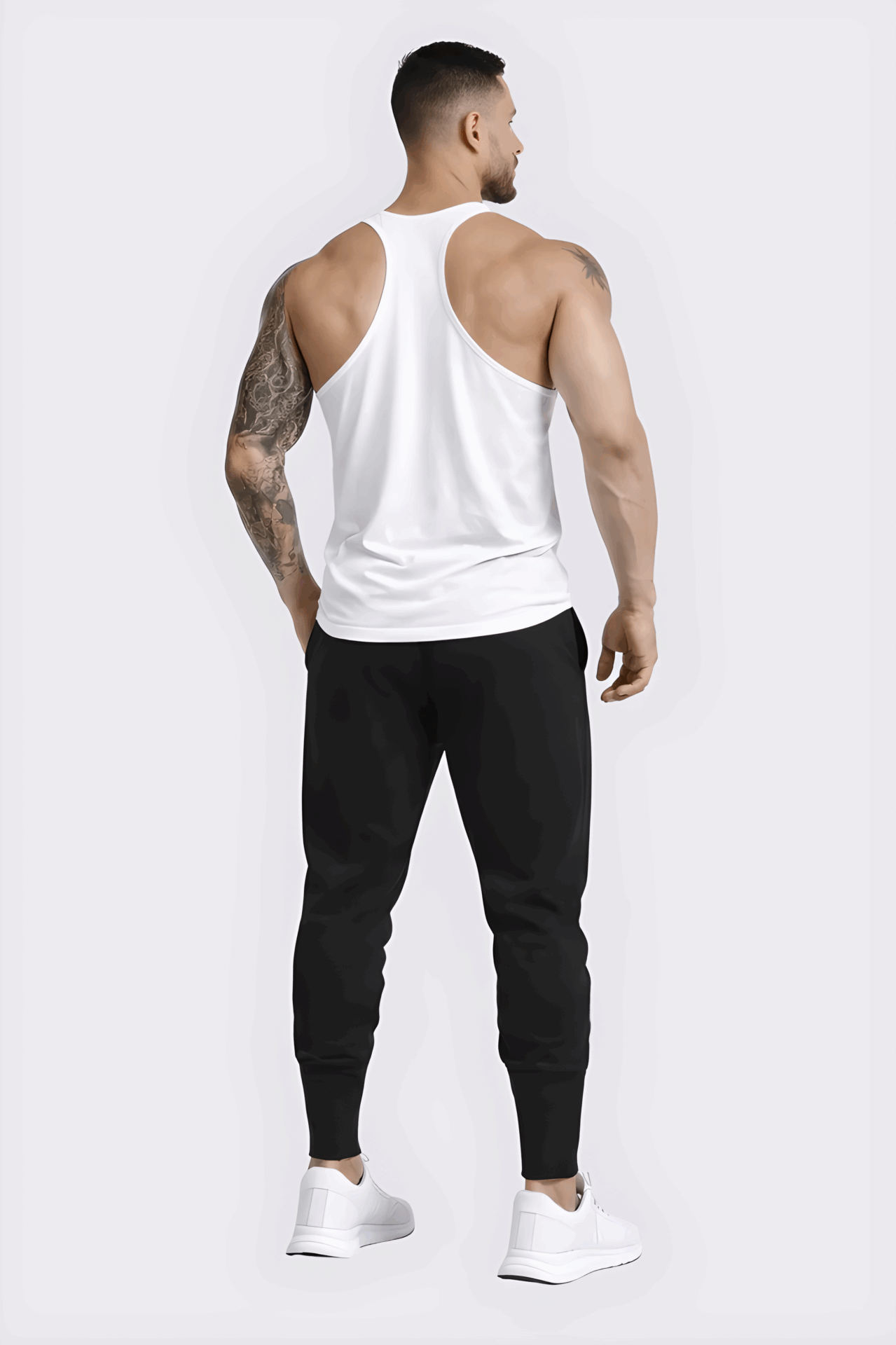 - Racerback design for maximum range of motion